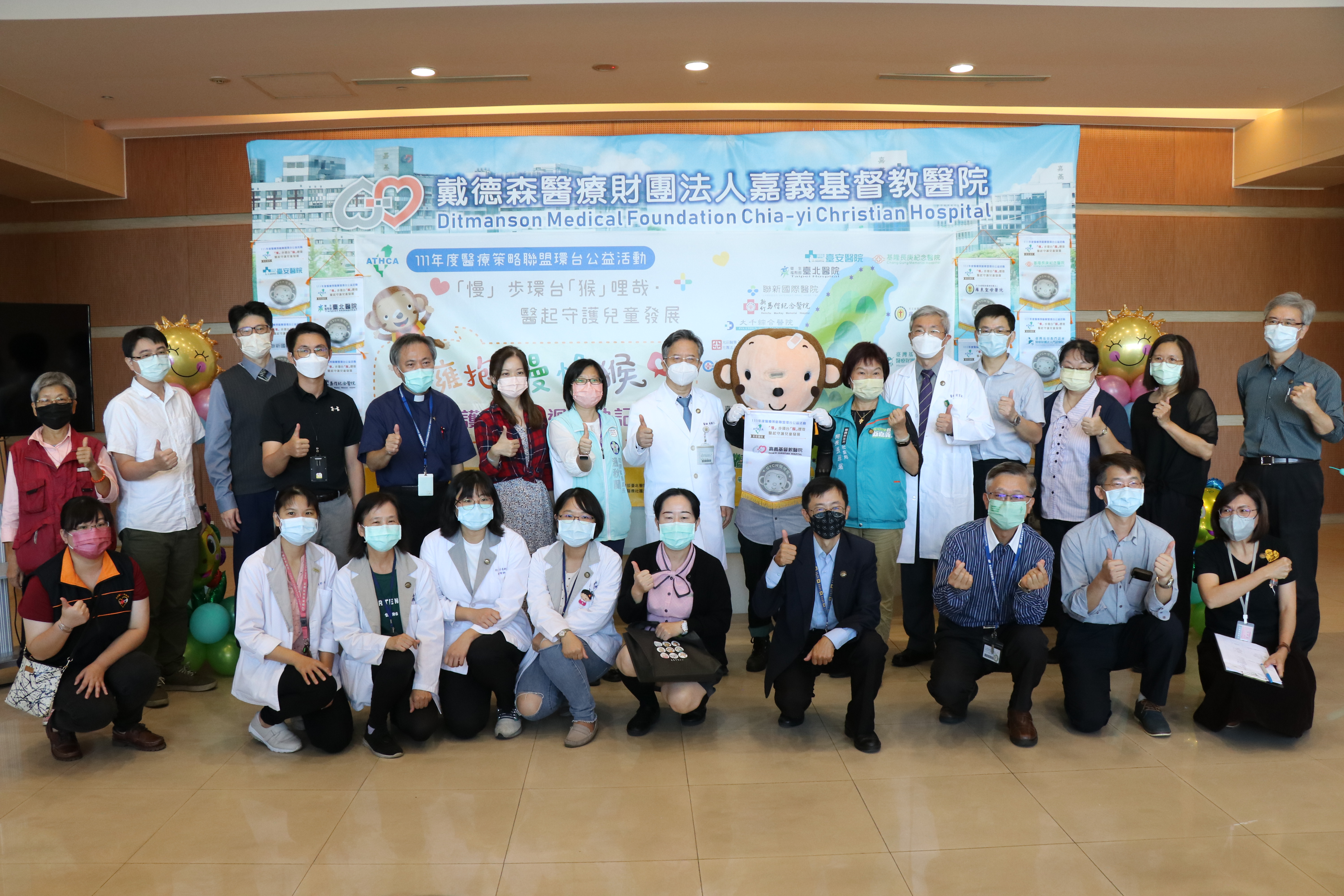 【新唐人亞太台 2022 年 10 月 26 日訊】嘉義基督教醫院,今天(26日)舉辦早期療育公益環台巡迴活動開跑儀式,有14家「醫療策略聯盟」(ATHCA)盟院一起響應。未來將由嘉基早療中心吉祥物「慢慢猴」擔任大使,自嘉基出發,進行為期1個月的環台公益巡迴演出,為早療兒童發聲,期待透過社會大眾的力量,發起對兒童健康發展與早期療育的重視,一起守護兒童。