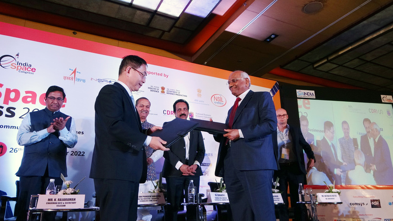 昨天在「2022印度太空大會」(India Space Congress 2022)的開幕儀式上,SIA-India會長帕沃魯利(Subba Rao Pavuluri)和中華民國駐印度代表葛葆萱交換了備忘錄。