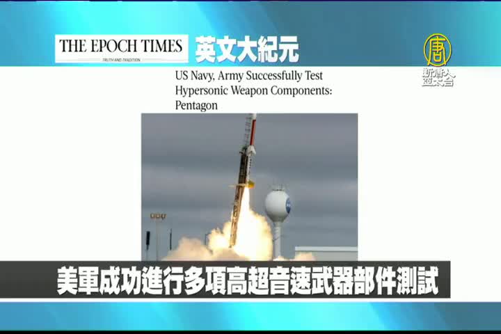 【新唐人亞太台 2022 年 10 月 28 日訊】首先來看到美國大紀元英文版報導:美國國防部表示,美國海軍和陸軍成功進行了多項高超音速武器部件的測試。
