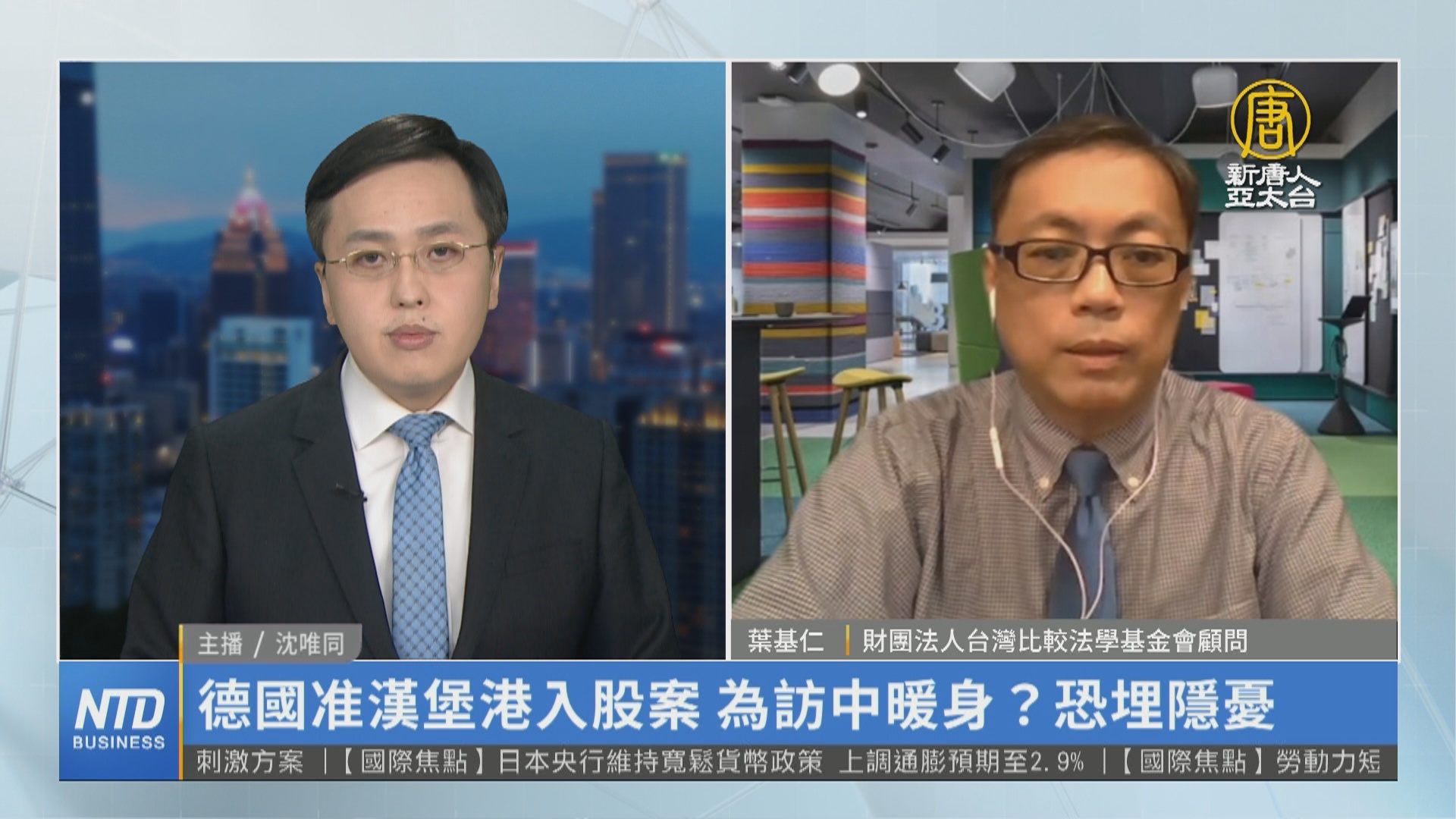 【新唐人亞太台 2022 年 10 月 28 日訊】德國總理蕭茲,下周即將拜訪中國,德國是搶先核准漢堡港入股交易案,我們請教經濟學博士,財團法人台灣比較法學基金會顧問葉基仁,近期中國中遠集團已經在歐洲八個港口持有股份,現在又入股德國漢堡港,您怎麼看中遠集團這項投資?投資案的時間點落在蕭茲訪問中國之前,對外釋出什麼訊號,怎麼解讀?