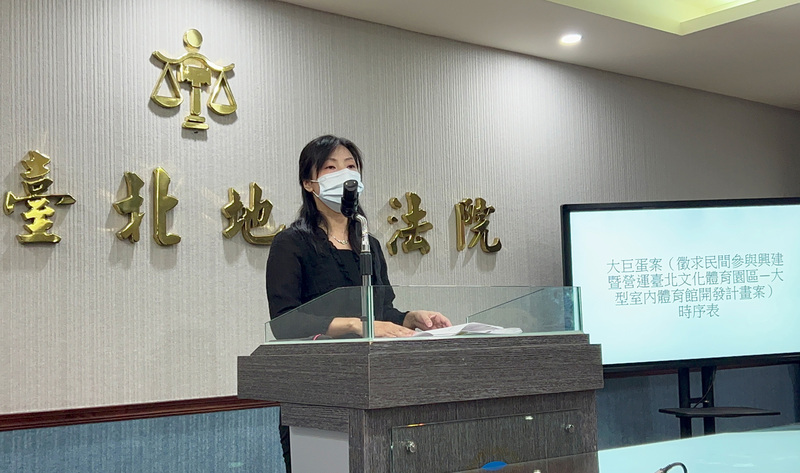 台北地方法院審理遠雄集團涉大巨蛋弊案、財報不實、賄賂民代官員護航開發案及眷改弊案,28日判決遠雄集團創辦人趙藤雄7年、前財政部長李述德9年徒刑,新北市議員周勝考10年徒刑。全案可上訴。圖為台北地方法院發言人周玉琦舉行記者會說明判決。(圖/中央社)