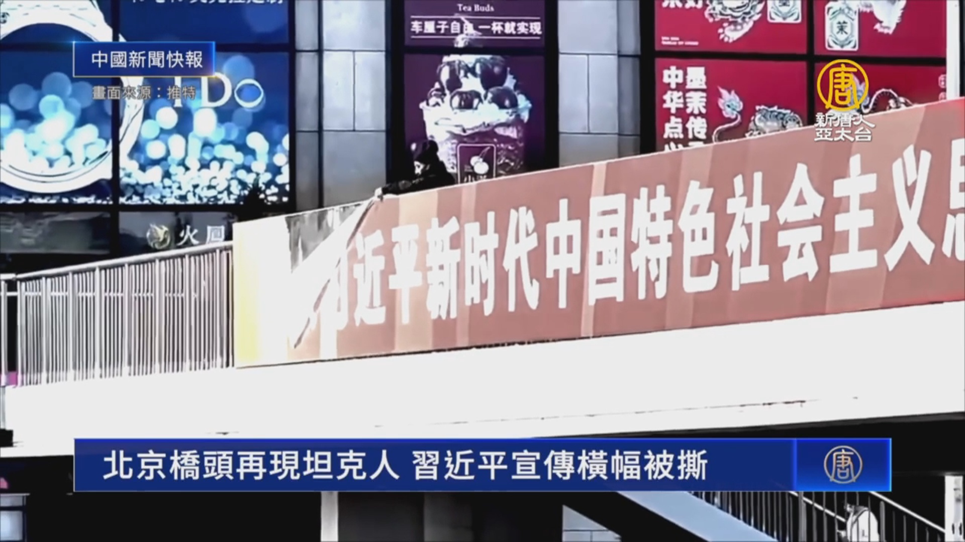 北京橋頭再現坦克人 習近平宣傳橫幅被撕