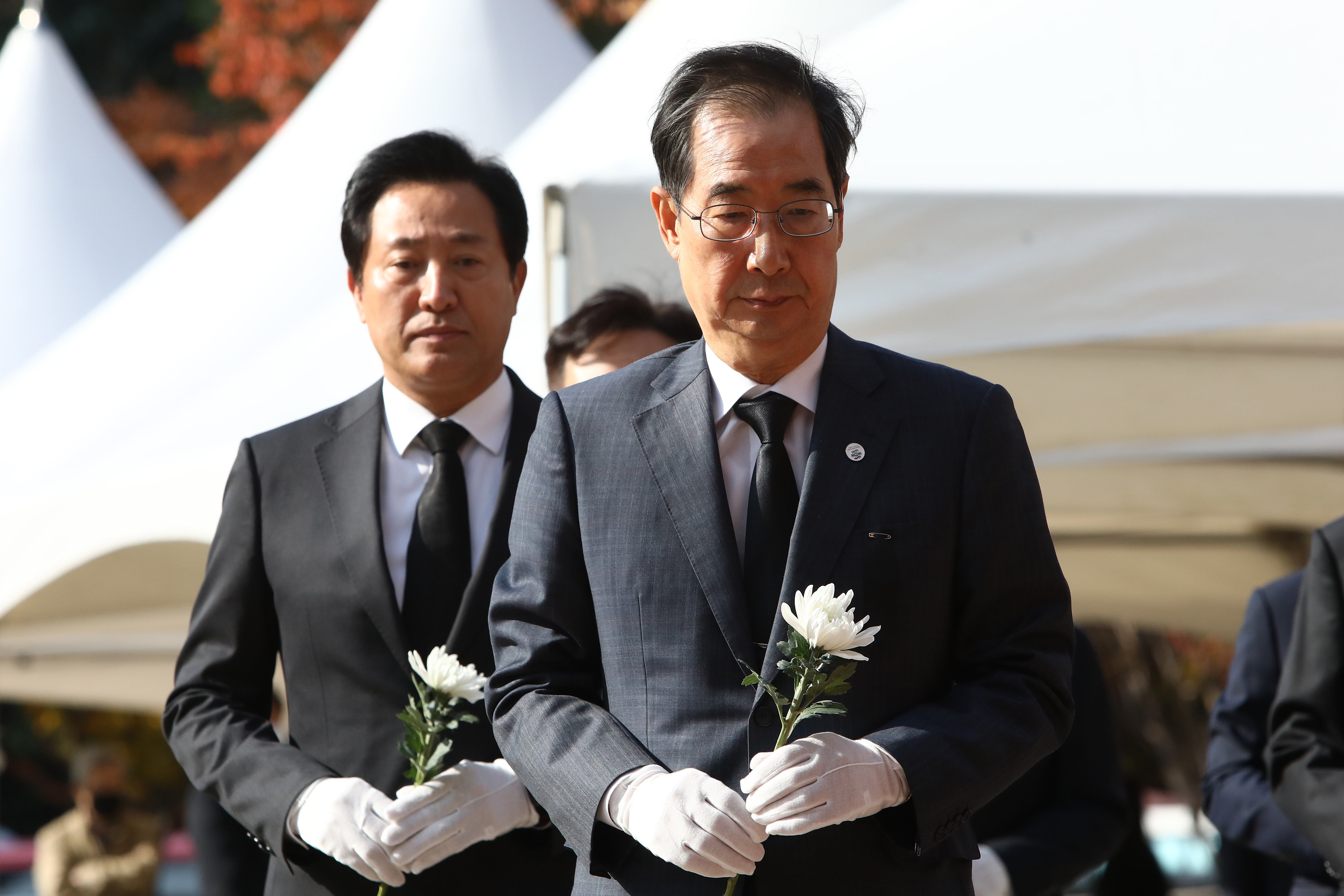 韓國首爾週末期間發生150多人喪命的梨泰院萬聖節推擠踩踏事件,舉國哀悼,總理韓德洙(前)31日矢言將徹查事件始末。(圖/GettyImages)