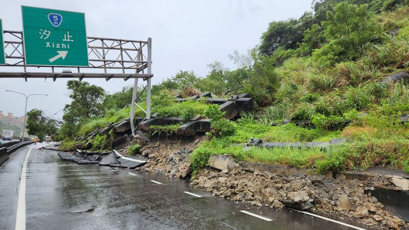 雨不停!國1南下汐止交流道走山 釀邊坡崩塌