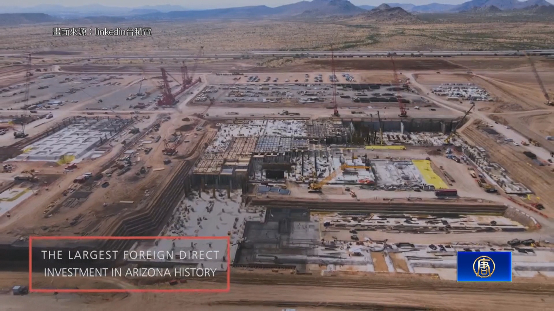 從高空俯瞰,台積電在美國亞利桑那州5奈米廠,如火如荼建設,12月上旬,將舉行首部機台移機典禮,到時候,除了董事長劉德音將帶領近300名公司高層及台灣官員前往出席,據傳美國總統拜登和眾議院議長裴洛西都在受邀名單內,有望一同見證這項極具戰略性的赴美投資案。