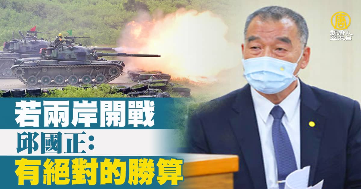 【新唐人亞太台 2022 年 11 月 01 日訊】兩岸情勢緊張,立委關注若兩岸開戰台灣的勝算有多少。國防部長邱國正今天在立法院會備詢表示,敵人只要沒有登陸,沒有把旗子插在各中央部會的頭上,敵人就沒有贏,並表示他有絕對的勝算。