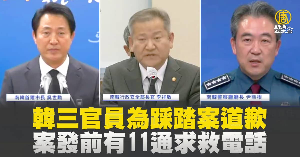 韓三官員為踩踏案道歉 案發前有11通求救電話