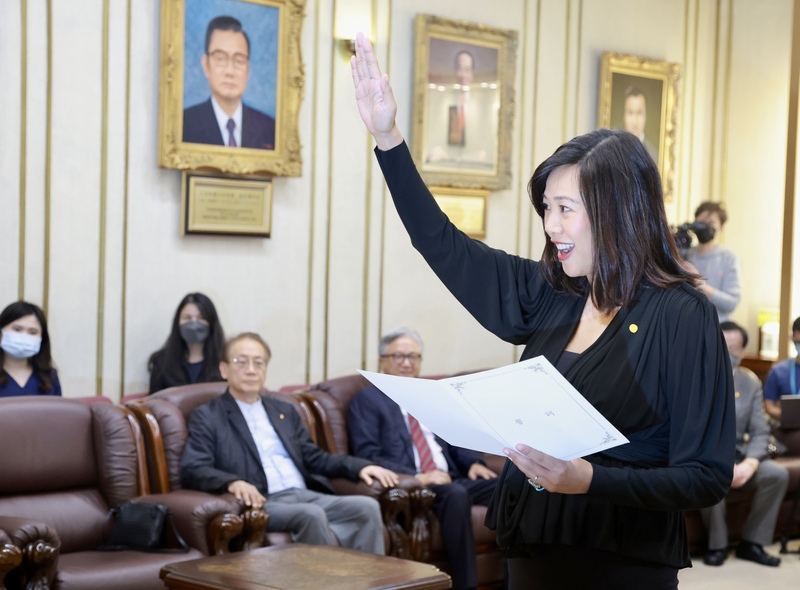【新唐人亞太台 2022 年 11 月 02 日訊】新光集團第3代吳欣盈今天宣誓就職遞補民眾黨不分區立委。吳欣盈說,她會專注幾項議題,包括如何讓台灣與世界接軌,把國際帶來台灣等;此外,她已向新光醫院提出辭去董事的申請,會用最嚴標準檢視自己。