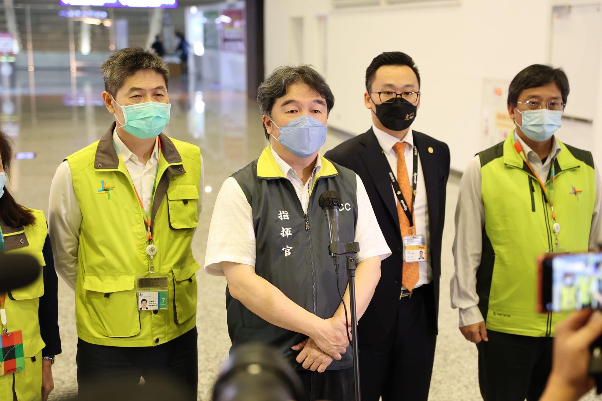 指揮中心指揮官王必勝(圖右三)說「5+n」新制從14日起上路,確診者需完成5天居家照護隔離,隔離期滿快篩結果陰性者,可外出還可以提前解除自主健康管理。資料照。(圖/翻攝自王必勝臉書)