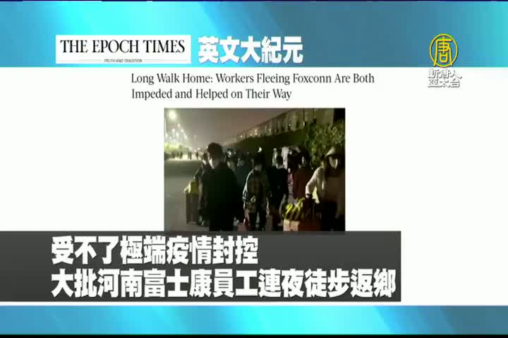 【新唐人亞太台 2022 年 11 月 04 日訊】首先來看到美國大紀元英文版報導:受不了極端疫情封控,大批河南富士康員工連夜徒步返鄉。