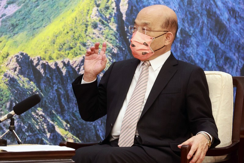 國民黨台北市長參選人蔣萬安指「綠共一家親」。行政院長蘇貞昌(圖)表示,蔣萬安的父親蔣孝嚴主張三通,還當中國買辦,到底誰在舔共、誰在兩岸間牟取暴利,這一看就清楚,不必再扭曲。資料照。(圖/中央社)