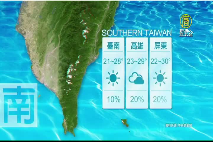 2022-11-07 08:23:32歡迎您收看11月7日的早安新唐人,我是唐潔安,先來帶您關心天氣。今天進入24節氣中的立冬,是很多人進補的時機,未來一週氣溫大多在20至30度之間。北北基、東半部有局部短暫雨,宜蘭北海岸時有較大雨勢,桃園以南則是秋高氣爽,但要注意日夜溫差,提醒早出晚歸的觀眾朋友,適時添加衣物。帶您一起來看到國際媒體重要訊息。