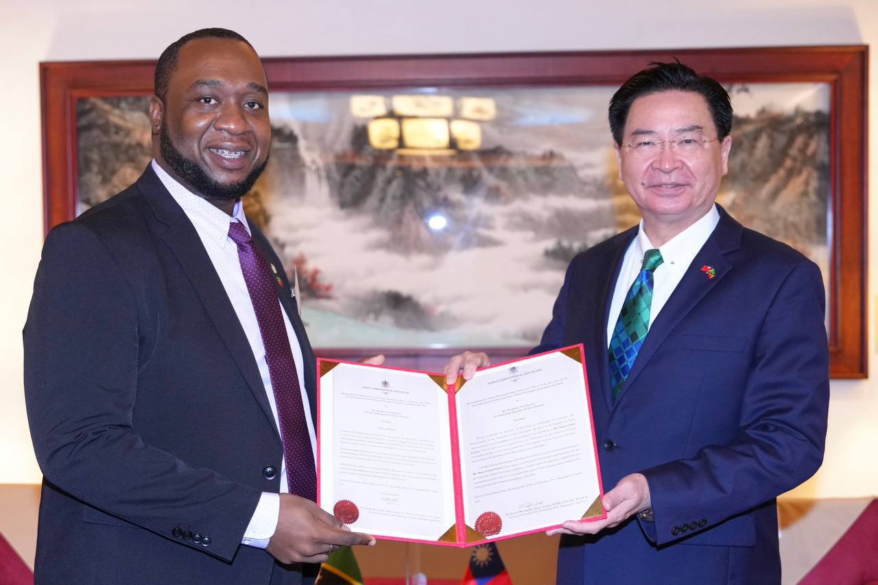 外交部表示,聖克里斯多福及尼維斯是台灣在加勒比海地區的重要友邦,兩國建交39年來在各領域密切合作,成果豐碩,深獲克國人民的肯定。