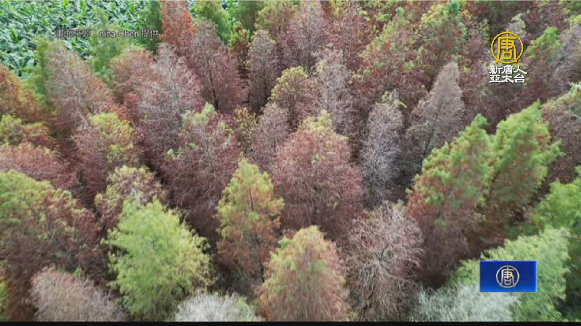 雲林落羽松轉色 遊客彷彿置身北國風情