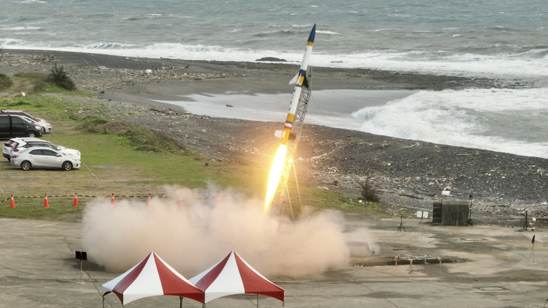 成大團隊成功地在屏東旭海發射兩節式混合火箭,並完成氣動力脫節與高空點火等關鍵技術測試。(圖/國家太空中心提供)