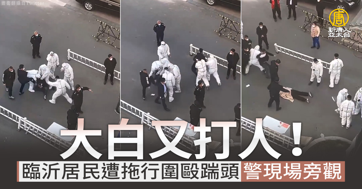 山東省臨沂市爆發疫情至今近一個月,很多區縣被封,11月7日,山東臨沂蘭山區發生大白毆打居民事件,部分住戶踹開圍擋,遭大白拖行,用腳踹頭、痛毆,事發時有警察在現場旁觀,還有便服黑衣人加入圍毆行列。官方稱,社區防疫人員與居民發生衝突,7人被行政拘留。網民質疑並譴責官方說法,但中共迅速壓制輿論。