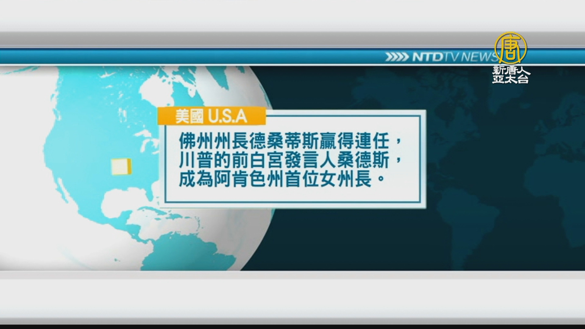 佛州州長德桑蒂斯贏得連任,川普的前白宮發言人桑德斯,成為阿肯色州首位女州長。