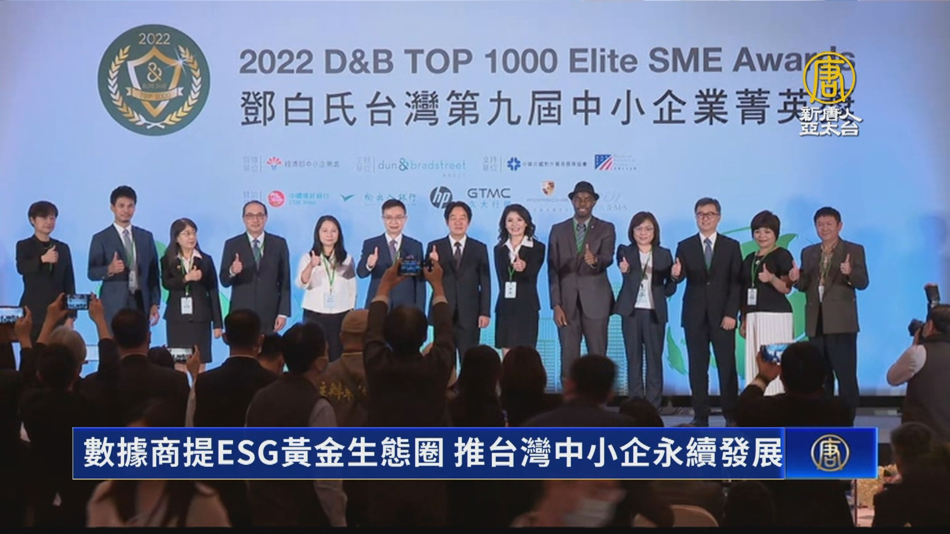 【新唐人亞太台 2022 年 11 月 09 日訊】2023年歐盟計畫實施碳稅制度,美國也將跟進,台灣中小企業面臨ESG永續課題。全球B2B商業數據廠商鄧白氏,今天頒發中小企業菁英獎,同時倡議ESG黃金生態圈,加值台灣企業的永續競爭力。