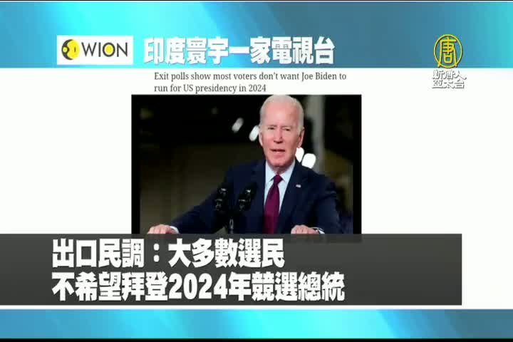 【新唐人亞太台 2022 年 11 月 10 日訊】最後是印度寰宇一家電視台報導:出口民調顯示,大多數選民不希望拜登2024年競選總統。