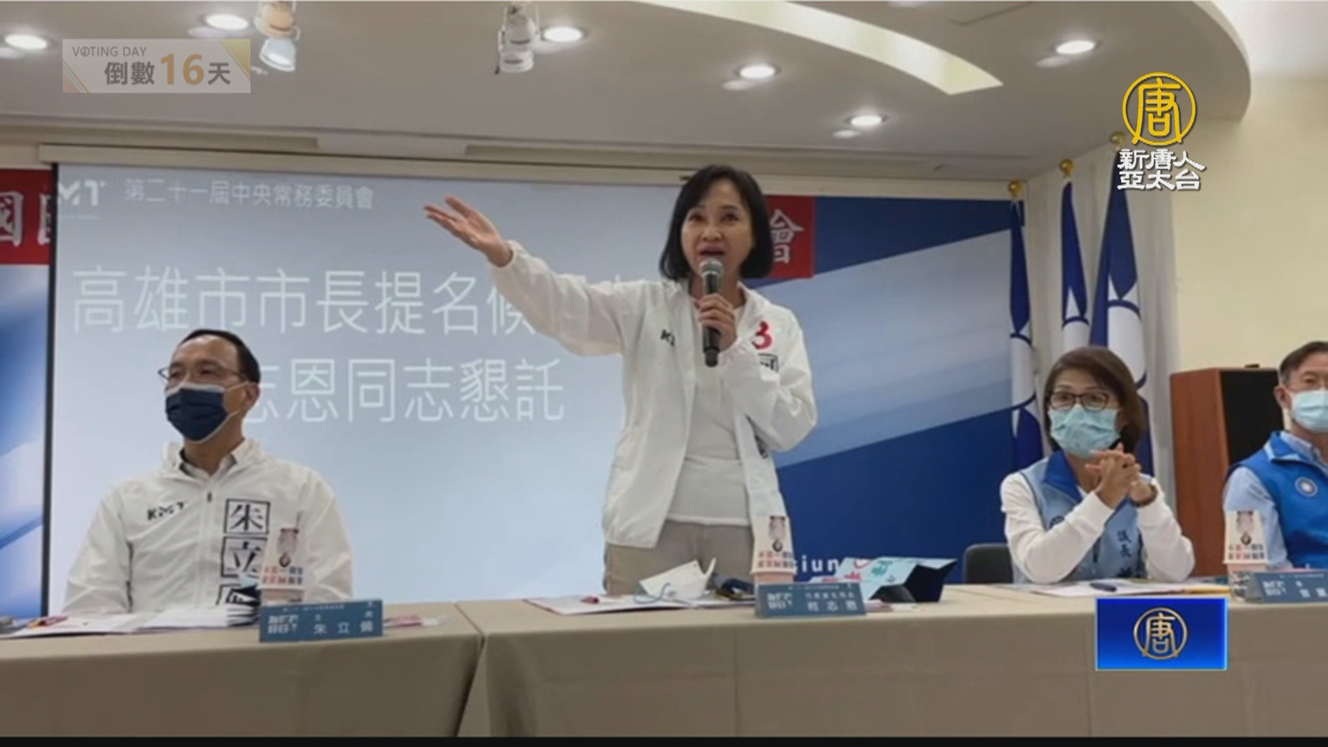 【新唐人亞太台 2022 年 11 月 10 日訊】繼續看到,國民黨中常會,昨天(9日)移師高雄舉行,為高雄市長候選人柯志恩造勢。柯志恩說,不論選舉結果如何,都會續留高雄。