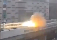 根據網友上傳至YouTube的畫面顯示,發生事故的列車卡在高架軌道間,突然連續出現巨大爆炸聲響,迸發火花四濺夾雜強烈閃光,捕捉畫面的目擊者深感錯愕與驚駭。