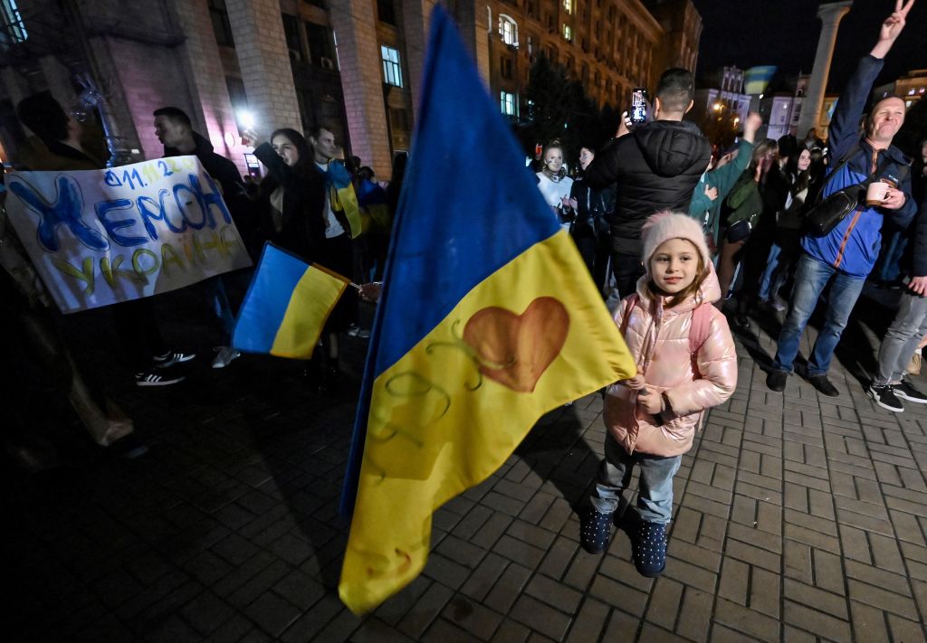 烏克蘭人走上街頭,慶祝俄羅斯軍隊撤出赫松市。(圖/GettyImages)