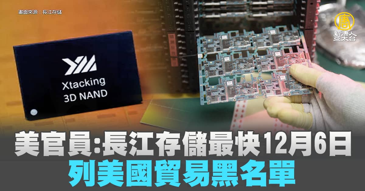 14號,路透社報導,負責出口執行的美國商務部助理部長艾克塞羅德(Matthew Axelrod)透露,中國長江存儲(YMTC)和其他30家中國公司,最快12月6號,就會被列入貿易黑名單。