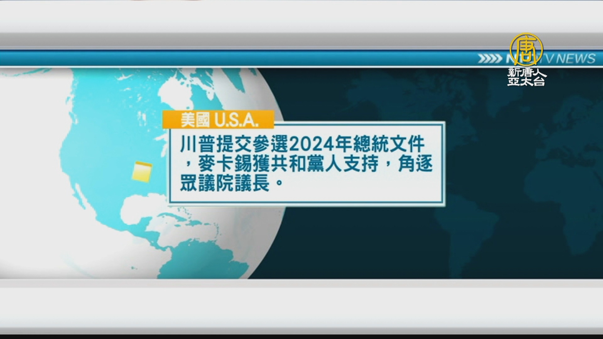 川普提交參選2024年總統文件,麥卡錫獲共和黨人支持,角逐眾議院議長。