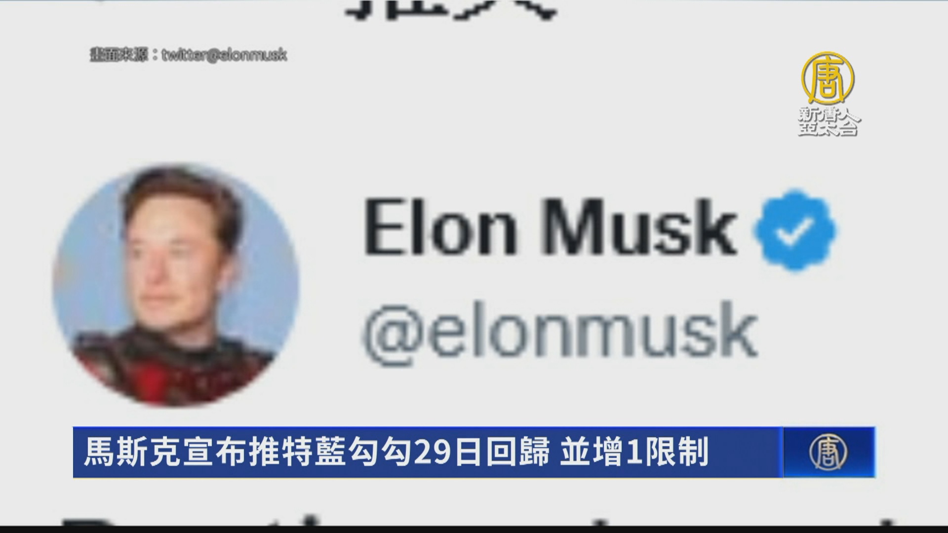 馬斯克宣布推特藍勾勾29日回歸 並增1限制