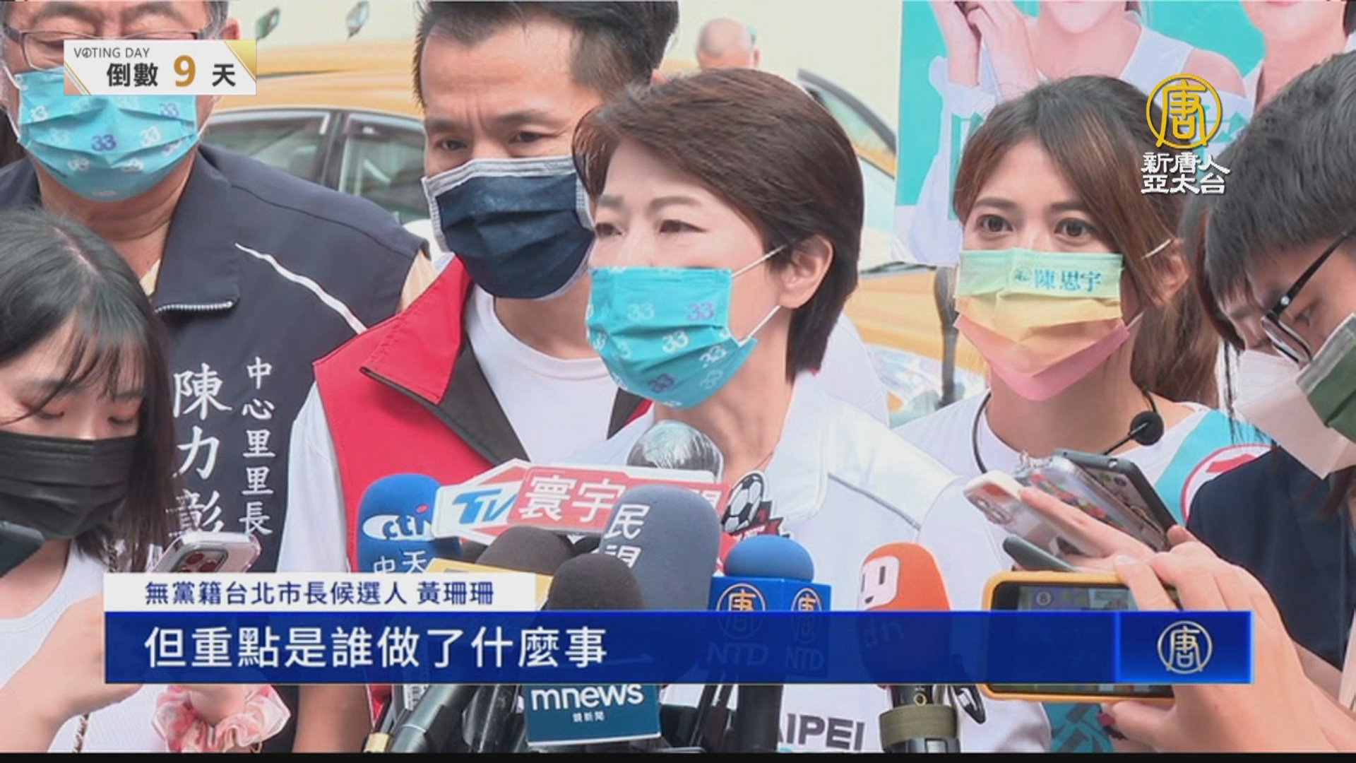 【新唐人亞太台 2022 年 11 月 17 日訊】台北市選戰,民進黨陳時中陣營質疑,蔣萬安的「矽谷律師」經驗有疑慮、是為中資服務。國民黨團今天(17日)披露,陳時中接任衛福部長前一個月,以台北醫學大學董事的身份,到中國大陸寧波,與當地醫院合作交流。對此,無黨籍候選人黃珊珊今天上午表示,重點是到中國做了甚麼。