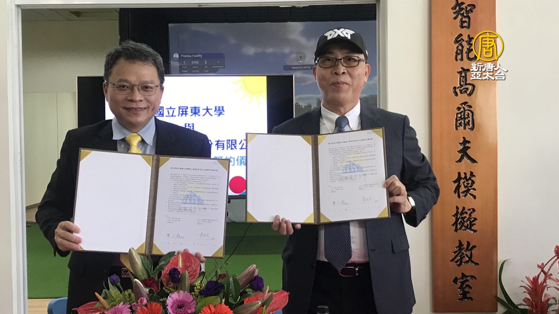 【新唐人亞太台 2022 年 11 月 17 日訊】國立屏東大學繼11月4日,與全球直播社交龍頭平台BIGO LIVE簽訂產學研究委託案和策略聯盟後,17日,再與全球第三大高爾夫球龍頭廠商大田精密工業,簽訂產學研究委託案暨策略聯盟。雙方希冀透過產學合作的模式,持續推動智能高爾夫模擬訓練場域,結合選手培育計畫,發揮區域整合功能。