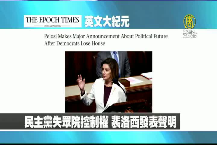 【新唐人亞太台 2022 年 11 月 18 日訊】首先來看到美國大紀元英文版報導:裴洛西在民主黨失去眾議院後,就政治前途發表重大聲明。