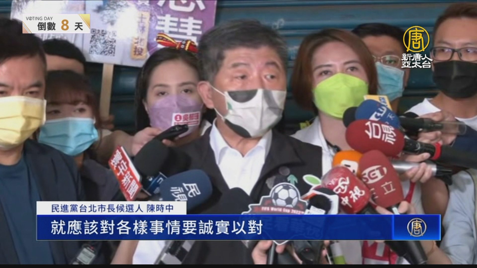 【新唐人亞太台 2022 年 11 月 18 日訊】民進黨台北市長候選人陳時中今天(18日)上午到士林葫蘆堵市場拜票,對於蔣萬安只把砲火對準自己,頻頻避談黃珊珊,是不是刻意操作邊緣化?陳時中也發表看法。