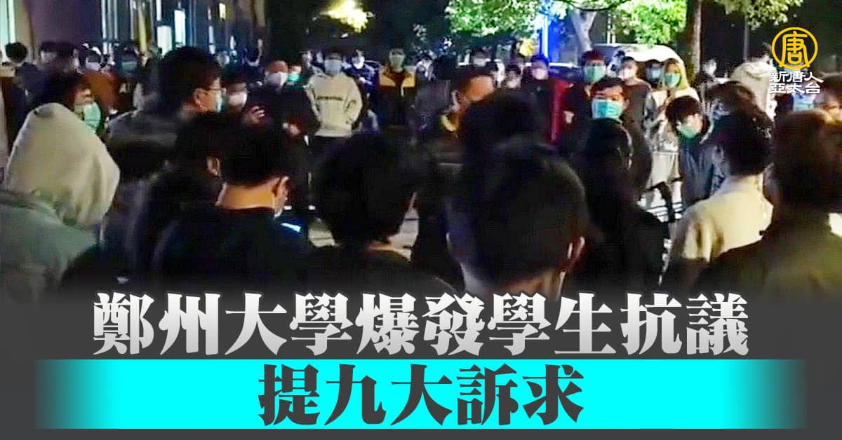 【新唐人亞太台 2022 年 11 月 18 日訊】中共極端防疫引發抗議不斷。鄭州大學學生16日發起抗議活動,提出九大訴求。
