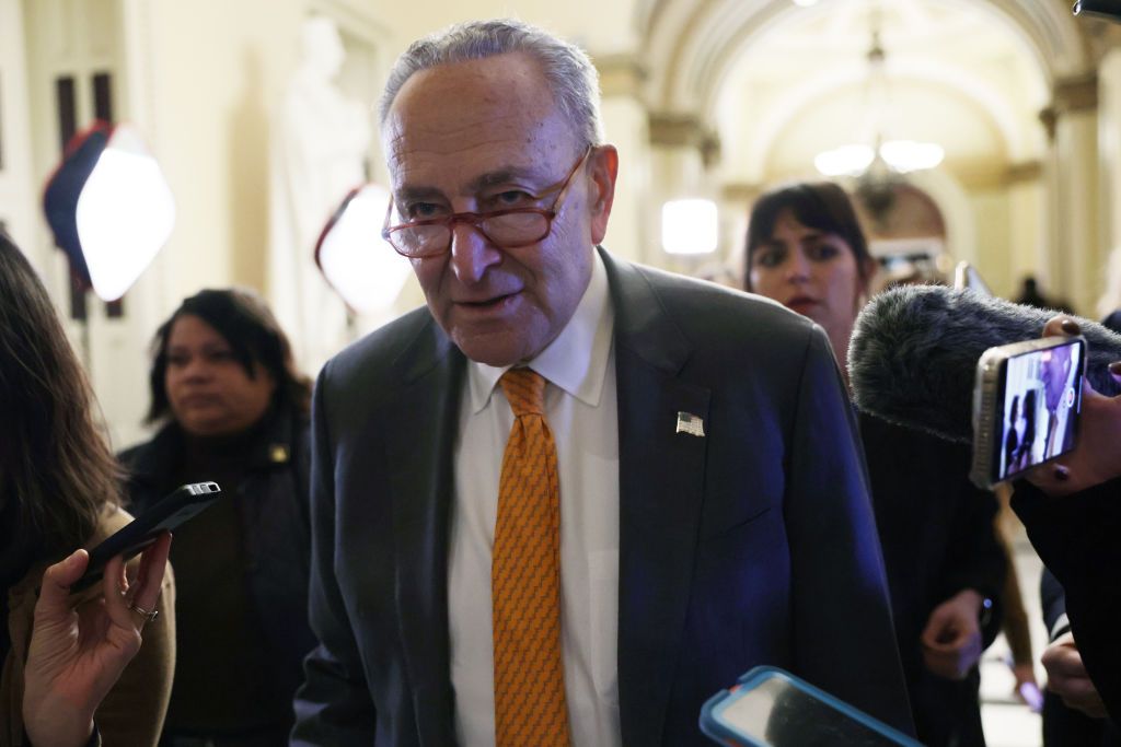 美國政治新聞機構Politico18日引述3名人士報導,聯邦參議院民主黨領袖舒默(圖)(Chuck Schumer)和共和黨籍參議員柯寧正努力遊說,希望禁止美政府與大陸晶片製造商做生意。資料照。(圖/GettyImages)