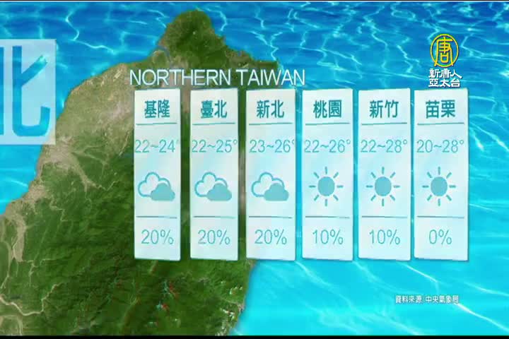2022-11-21 08:31:52歡迎您收看11月21日的早安新唐人,我是唐潔安,先來帶您關心天氣。受東北季風影響,北部及東北部今天的天氣稍涼,明(22日)天,白天東北季風減弱,北部及東北部氣溫稍回升。週三(23日)開始,至週五(25日)鋒面南下,可能會有較大雨勢。帶您一起來看到國際媒體重要訊息。