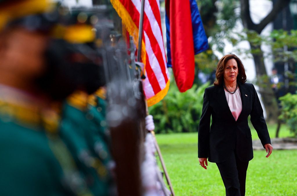 美國副總統賀錦麗(Kamala Harris)(圖)20日 抵菲訪問,21日卻傳出菲律賓占有的南海中業島上居民20日聽到自中共占據島礁傳來的爆破聲,中共海警還自菲國海軍手中奪走不明海上漂浮物。(圖/GettyImages)