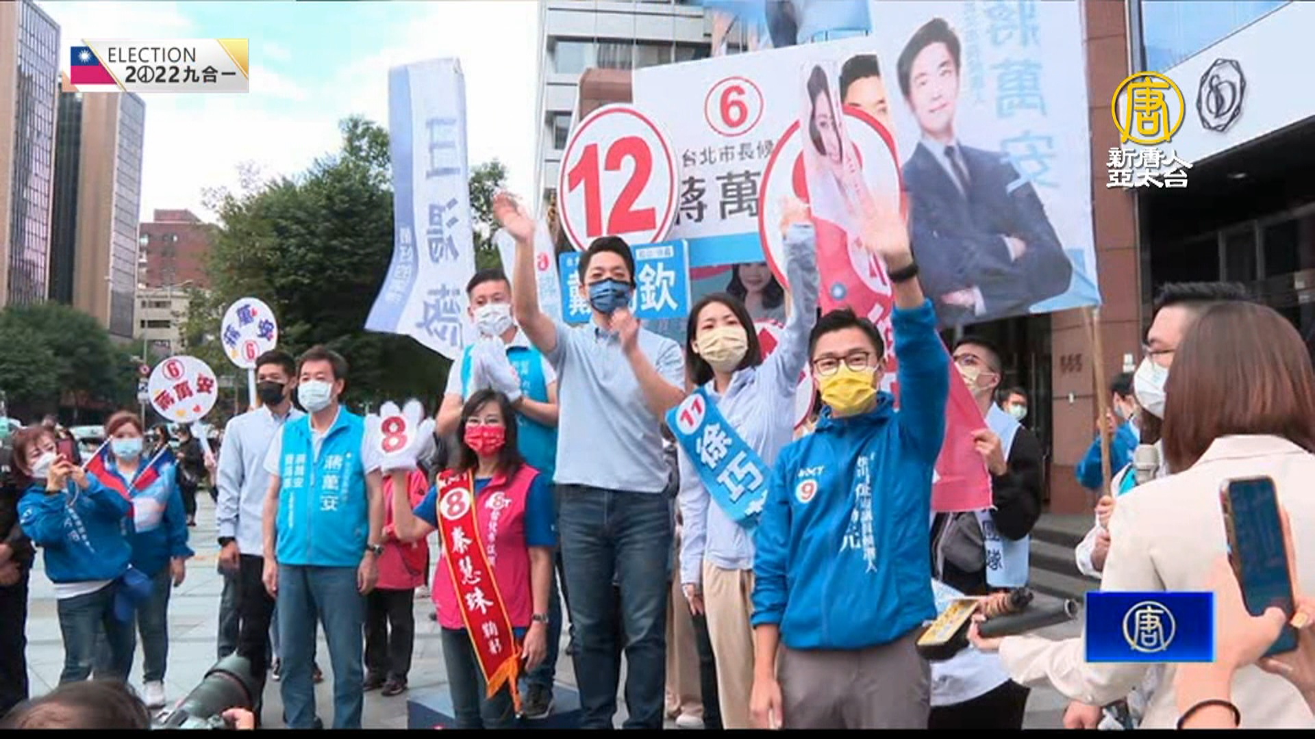 【新唐人亞太台 2022 年 11 月 21 日訊】九合一選戰這週六就要投票,倒數最後五天,台北市長候選人各個卯足全力衝刺,民進黨的陳時中今天(21日)合體林佳龍掃街,國民黨蔣萬安除了自己拜票,蔣家大姊也來幫忙了,而黃珊珊則是打溫情牌,由93歲的母親拍片力挺。