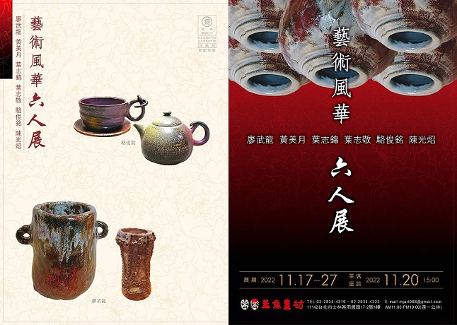 【新唐人亞太台 2022 年 11 月 21 日訊】「藝術風華六人展」自11月17日起,在台北市士林區孟焦畫廊展出,20日舉行開幕茶會,展期至11月27日止,出席藝術家廖武龍、黃美月、葉志錦、葉志敬、駱俊銘、陳光炤等六人;這次六位藝術家在各自創作領域上面各顯神通,展出作品相當多元與豐富。
