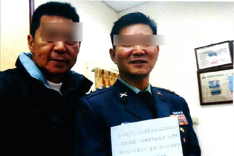 陸軍步訓部上校主任向德恩(右)涉遭退休軍官邵維強(左)吸收,自民國108年以每月4萬元收賄達56萬元,甚至簽署向中共投降承諾書並穿軍服合影,檢調22日依貪污等罪將他起訴,求刑12年。(圖/讀者提供)