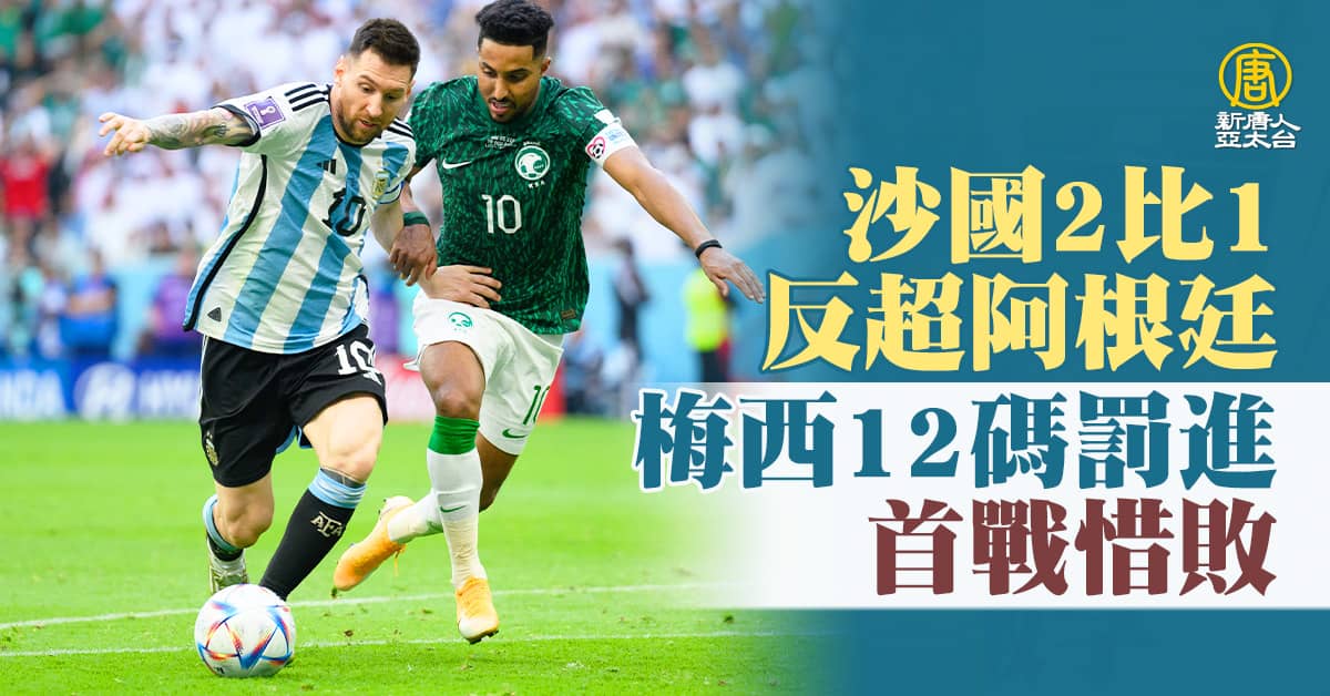 2022-11-22 22:16:43世界排名第51的沙烏地阿拉伯今天在世界盃足球賽大爆冷門,2比1擊退奪冠大熱門阿根廷,締造世足史上最大冷門之一,超級巨星梅西最後一屆世足賽事出師不利。