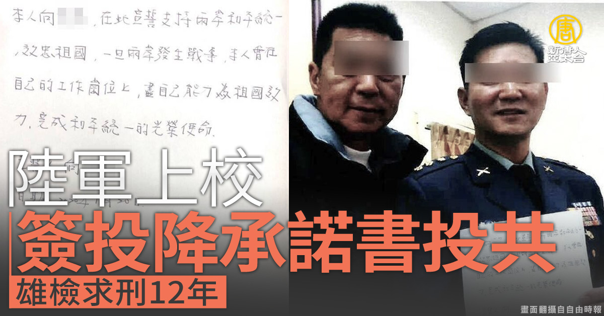 陸軍上校簽投降承諾書投共 雄檢求刑12年