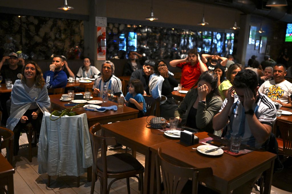 世界排名第51的沙烏地阿拉伯在世界盃足球賽大爆冷門,2比1擊退奪冠大熱門阿根廷,締造世足史上最大冷門之一。在餐廳觀賽的阿根廷球迷難掩失落。(圖/GettyImages)