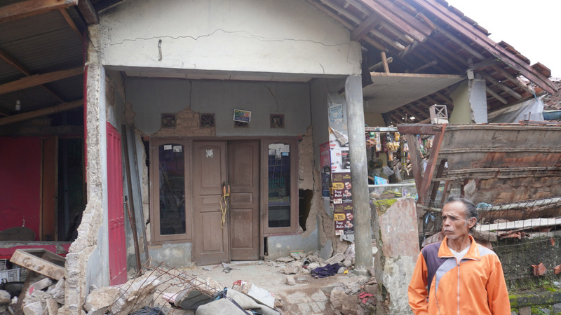 印尼西爪哇省21日發生規模5.6淺層地震,導致許多房屋倒塌,震後第5天仍餘震不斷。(圖/中央社)