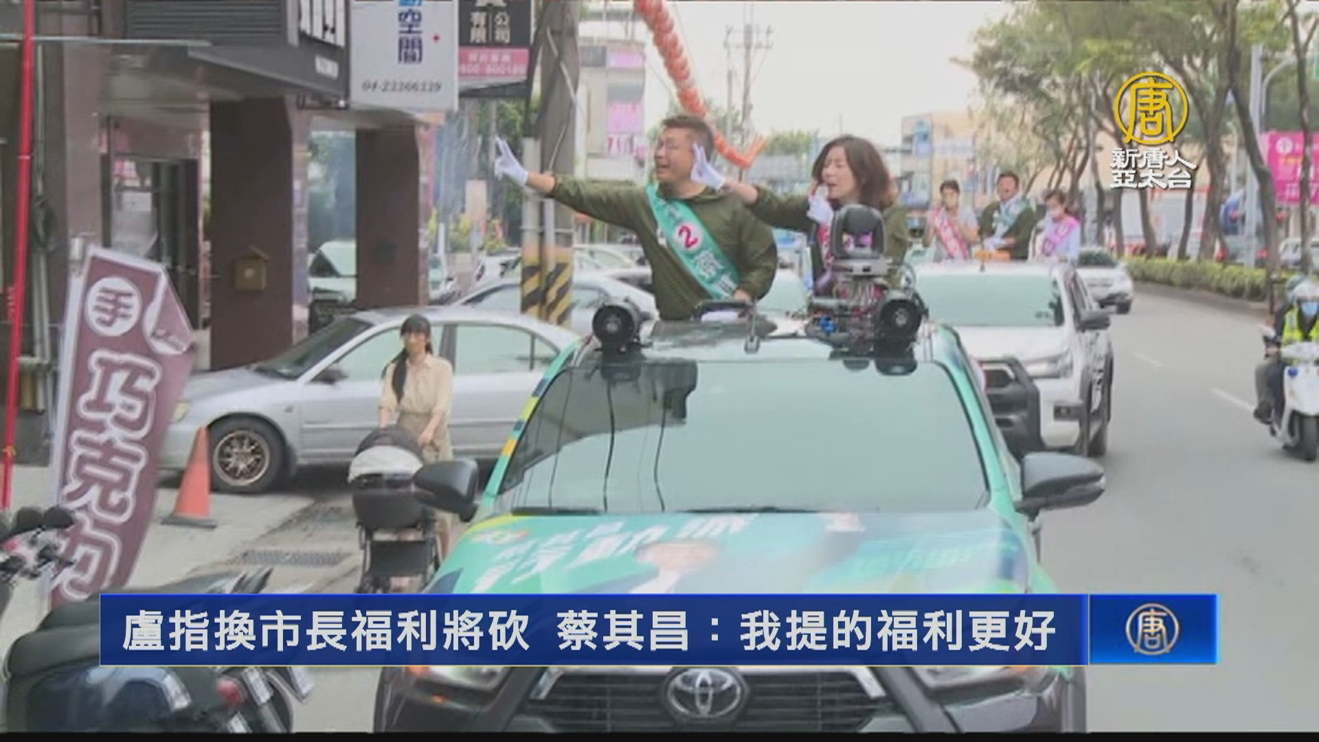 【新唐人亞太台 2022 年 11 月 25 日訊】好,已經是選戰最後一天了,今天(25日)台中市長盧秀燕,除了晚間的選前之夜造勢活動之外,並無其他行程。不過,前一晚盧秀燕在造勢場合催票時,表示如果台中市長換人做,老人健保補助、育兒津貼可能被砍。對此,民進黨台中市長候選人蔡其昌受訪時反駁,認為盧秀燕說詞是恐嚇選民。