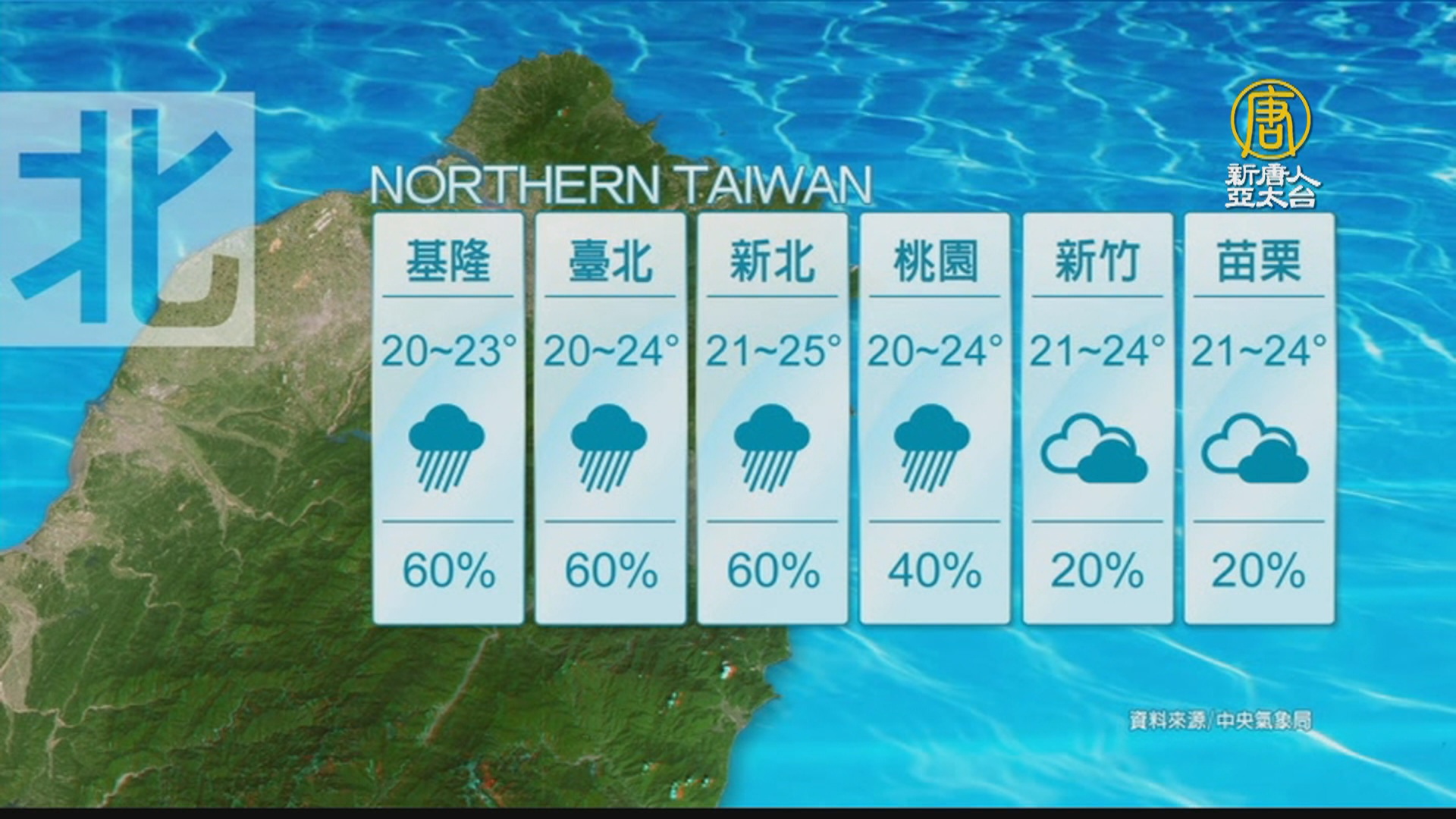 2022-11-25 11:02:31歡迎您收看11月25日的早安新唐人,我是趙庭譽,先來帶您關心天氣。氣象局對北北基桃以及新竹六個縣市發布大雨特報,另外,明天週六投票日,東北季風雖然持續影響,但北部降雨將會趨緩。帶您一起來看到國際媒體重要訊息。