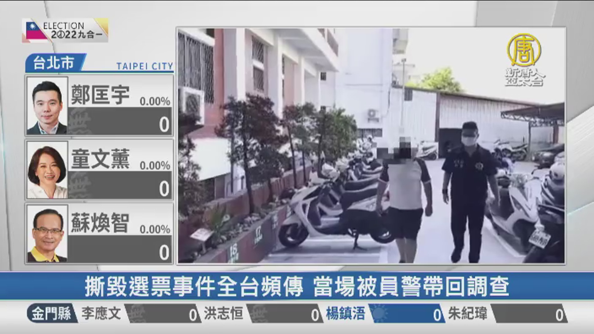 【新唐人亞太台 2022 年 11 月 26 日訊】九合一地方公職人員選舉今天登場,各地傳出零星違規事件,台北市北投區,台南市安定區及高雄市大社區,都傳出有民眾撕毀選票,現場選務人員及警衛人員立即處理,今天上午10點多,高雄市大社區的一處投開票所,一名67歲的選民,撕毀公投票。這名男子跟選務人員說,他不知道公投內容,又不知如何處理,所以才會撕毀公投票。不過,依據《公民投票法》第44條規定,故意撕毀領得的公投票者,處新台幣5千元以上、5萬元以下罰鍰,後續將函請高雄市選委會裁罰。截至今天下午1點,全台總共有45件47人涉嫌違反選罷法事件。