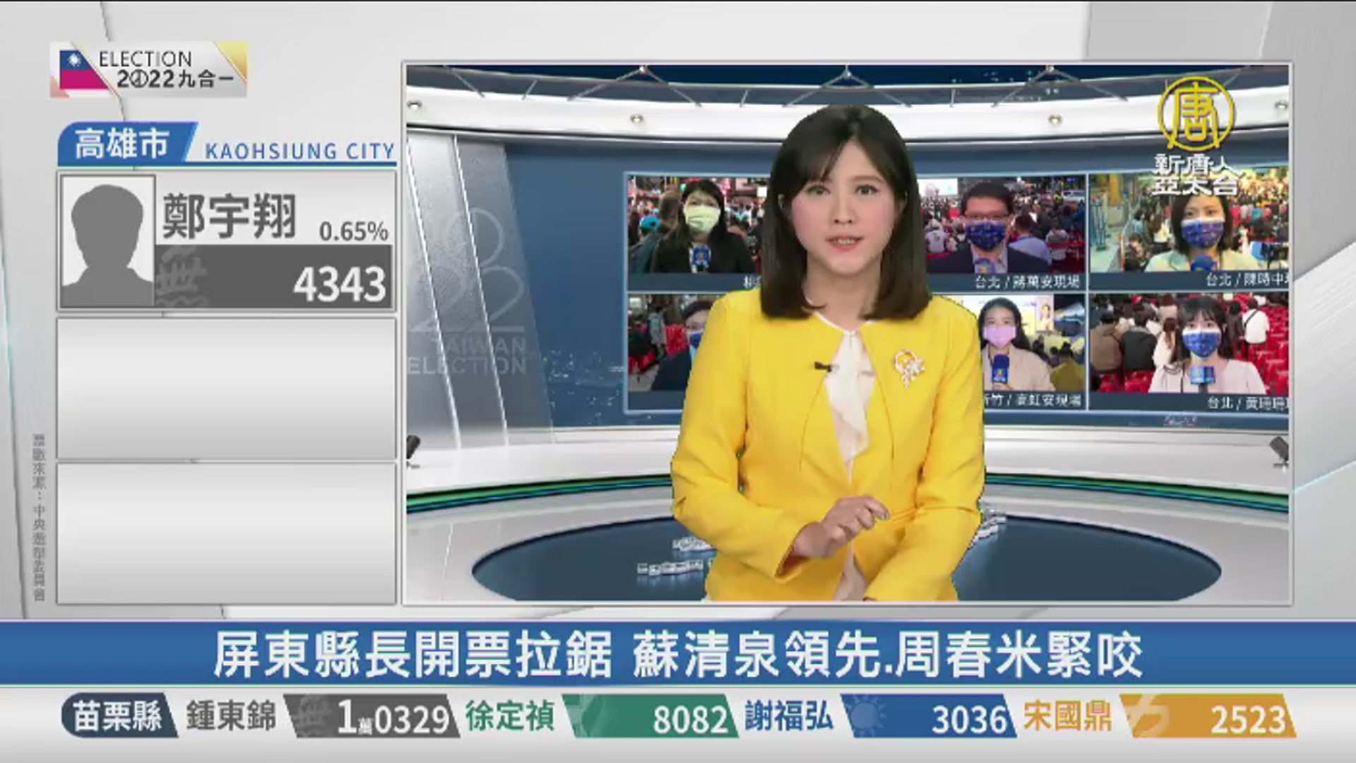 【新唐人亞太台 2022 年 11 月 26 日訊】屏東縣九合一大選,長期執政的民進黨今年面對國民黨強力挑戰,依據中選會的開票數據,目前國民黨候選人蘇清泉來到1萬01百05票,票數一路領先,民進黨候選人周春米的9千9百82票。
