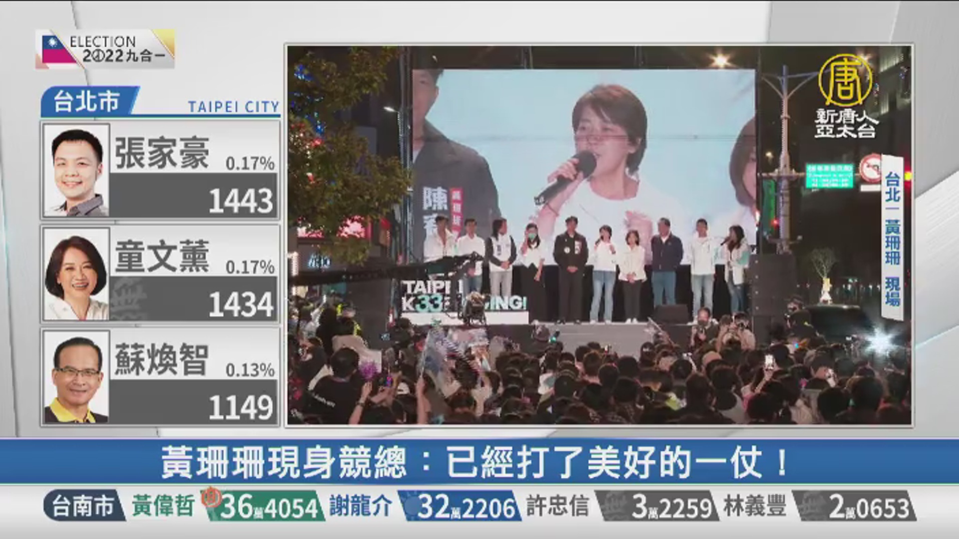 黃珊珊拚首位女台北市長 總部開票直擊