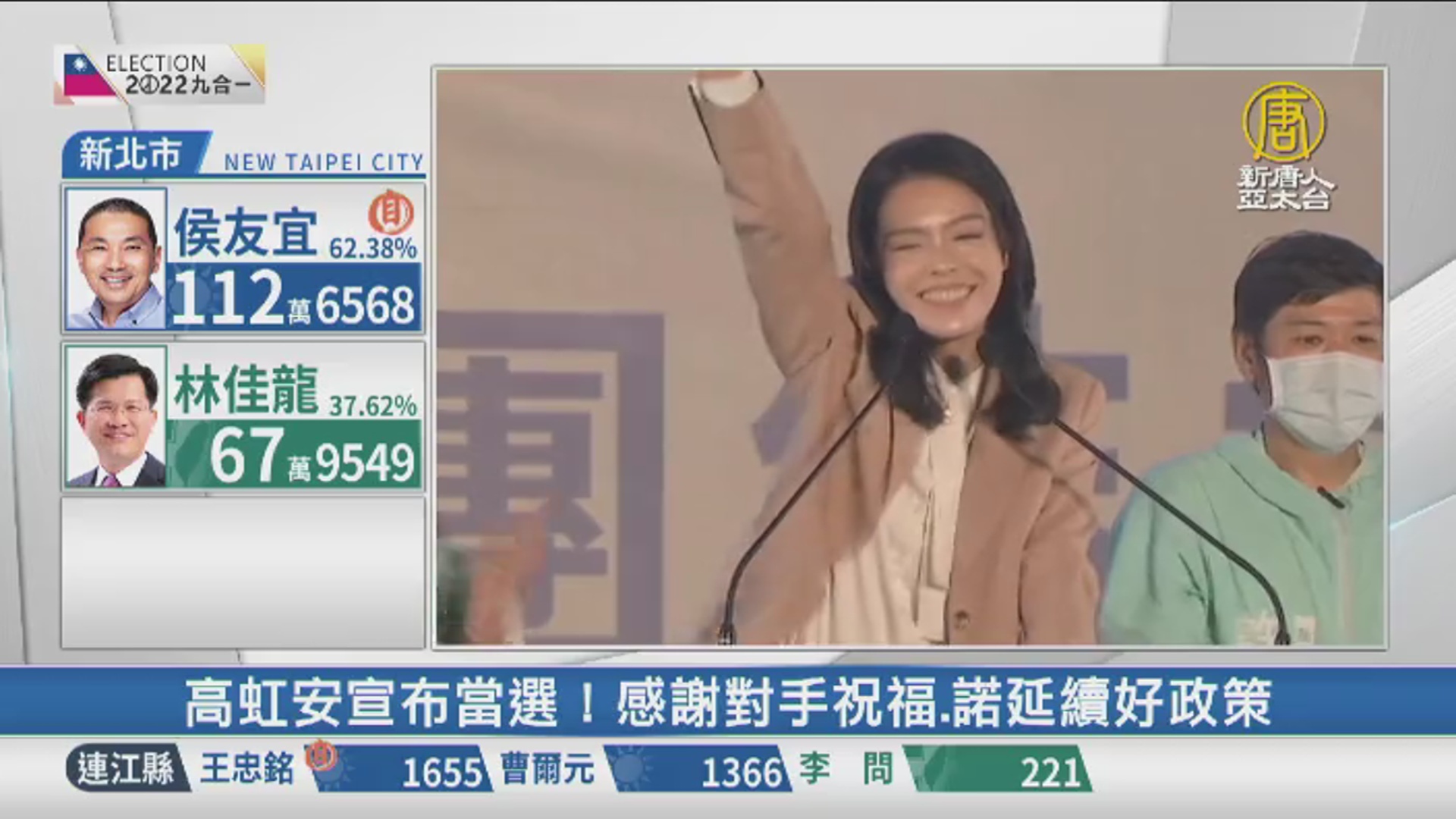 【新唐人亞太台 2022 年 11 月 26 日訊】繼續來關注新竹市選情,目前新竹市開票進度,可以看出結果是大致底定,由民眾黨候選人高虹安勝出,拿下新竹市長的寶座。